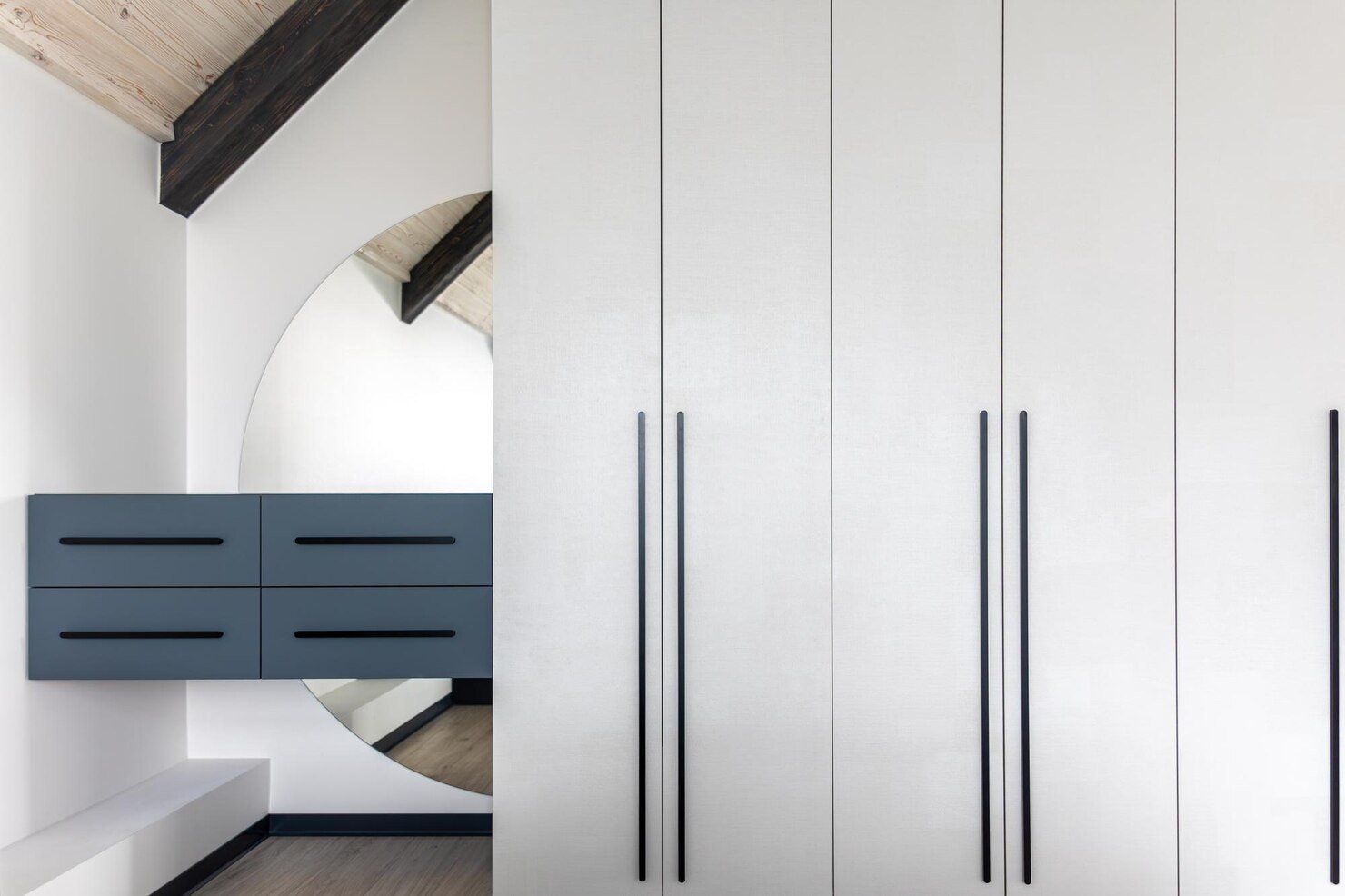 Главное отличие шкафа на заказ от готового – точность. Он встаёт в нишу миллиметр в миллиметр. Не остаётся зазоров, не надо думать, куда деть щель в углу. Всё учитывается: трубы, розетки, даже кривизна стен.